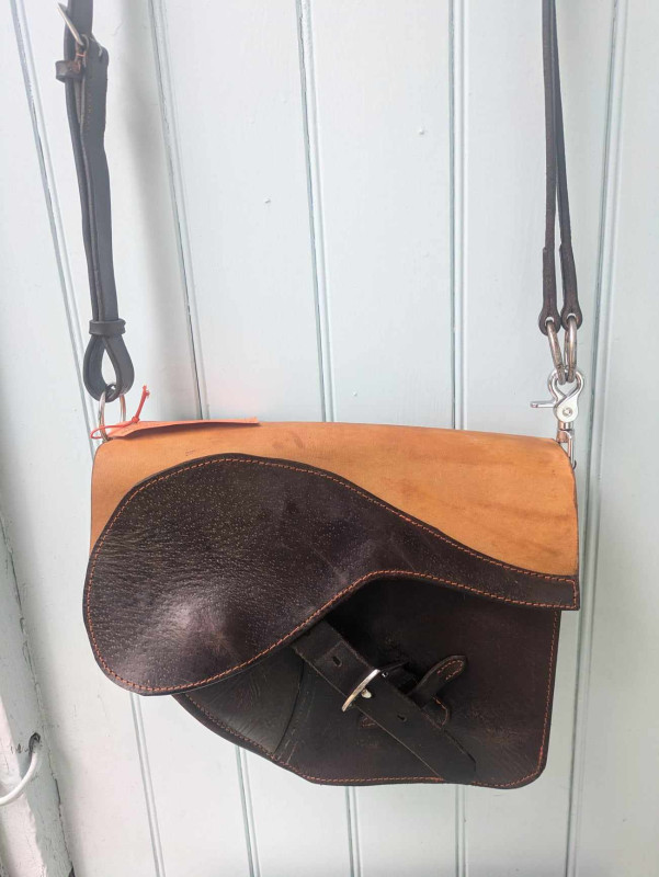 A truly bespoke shoulder bag made using leather repurposed from a much-loved saddle.